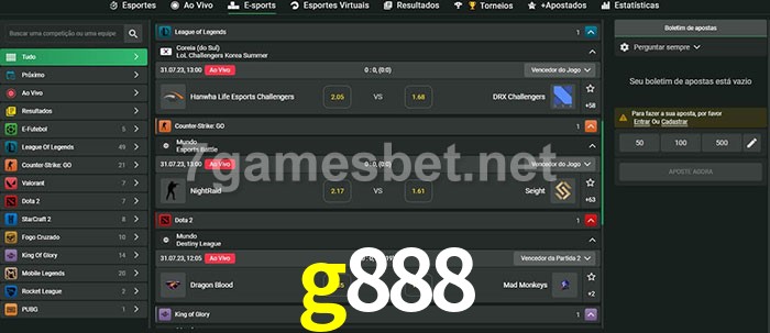 A aposta g888 oferece aos jogadores a experiência mais conveniente de apostas em eSports!